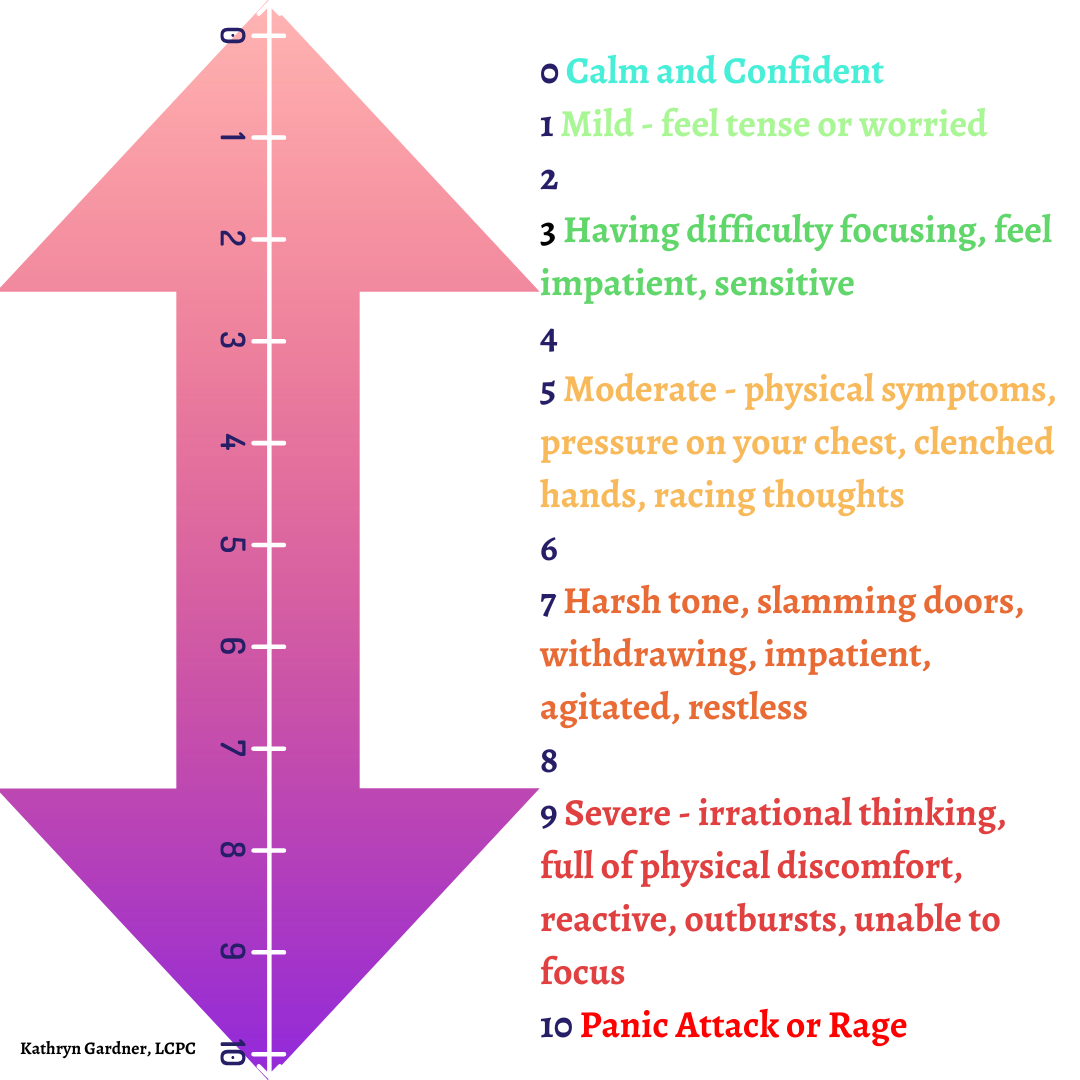 You want to decrease the tension that is building and recognize what set off the anxiety. The hope is to reduce it and always stay under a 5.